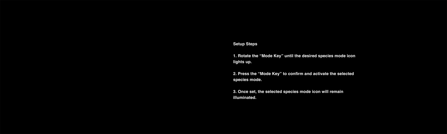The species mode settings are provided for user convenience. Please adjust the environment and settings according to the specific needs of different species and their various stages.